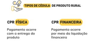 - CPR Financeira: o compromisso é de pagamento em dinheiro, com base no valor de mercado do produto na data do vencimento, acrescido de eventuais encargos.